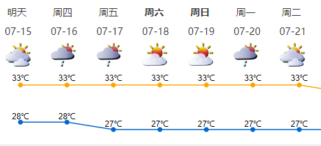 預(yù)計(jì)15-17日多云,有短時(雷)陣雨;18-20日天氣悶熱,局地偶有短時陣雨。