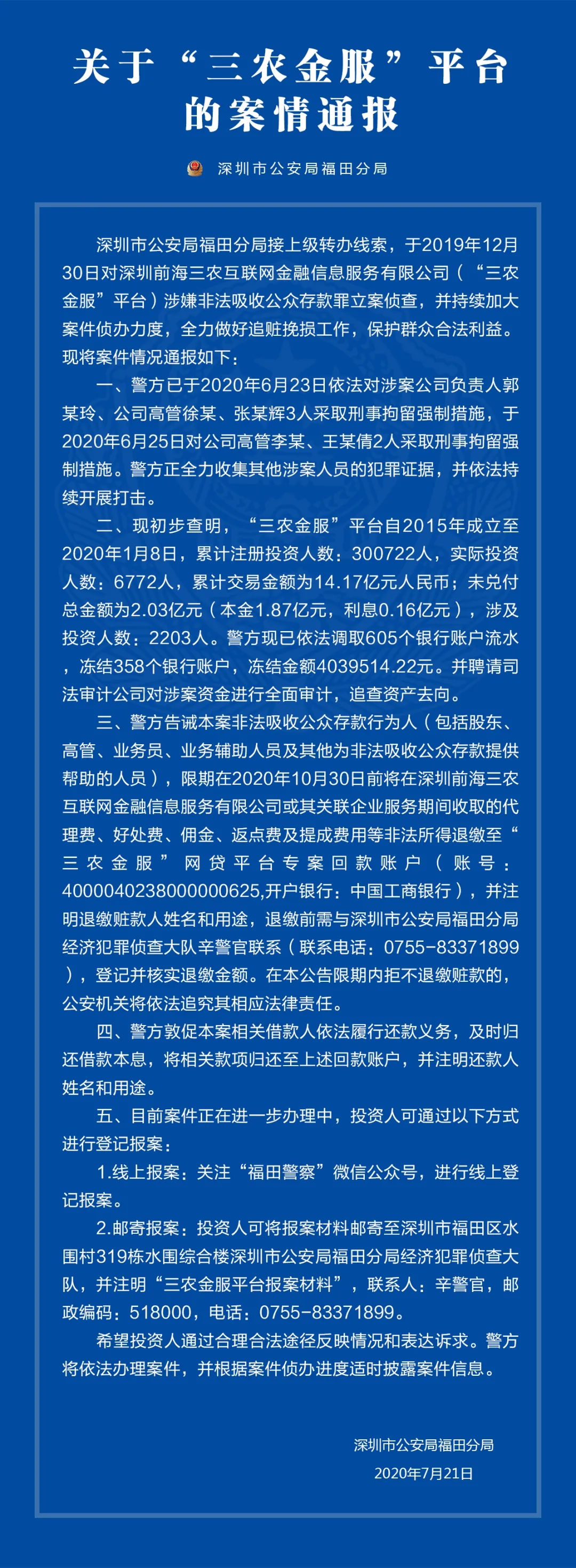 關于“三農(nóng)金服”平臺、“大麥理財”平臺的案情通報