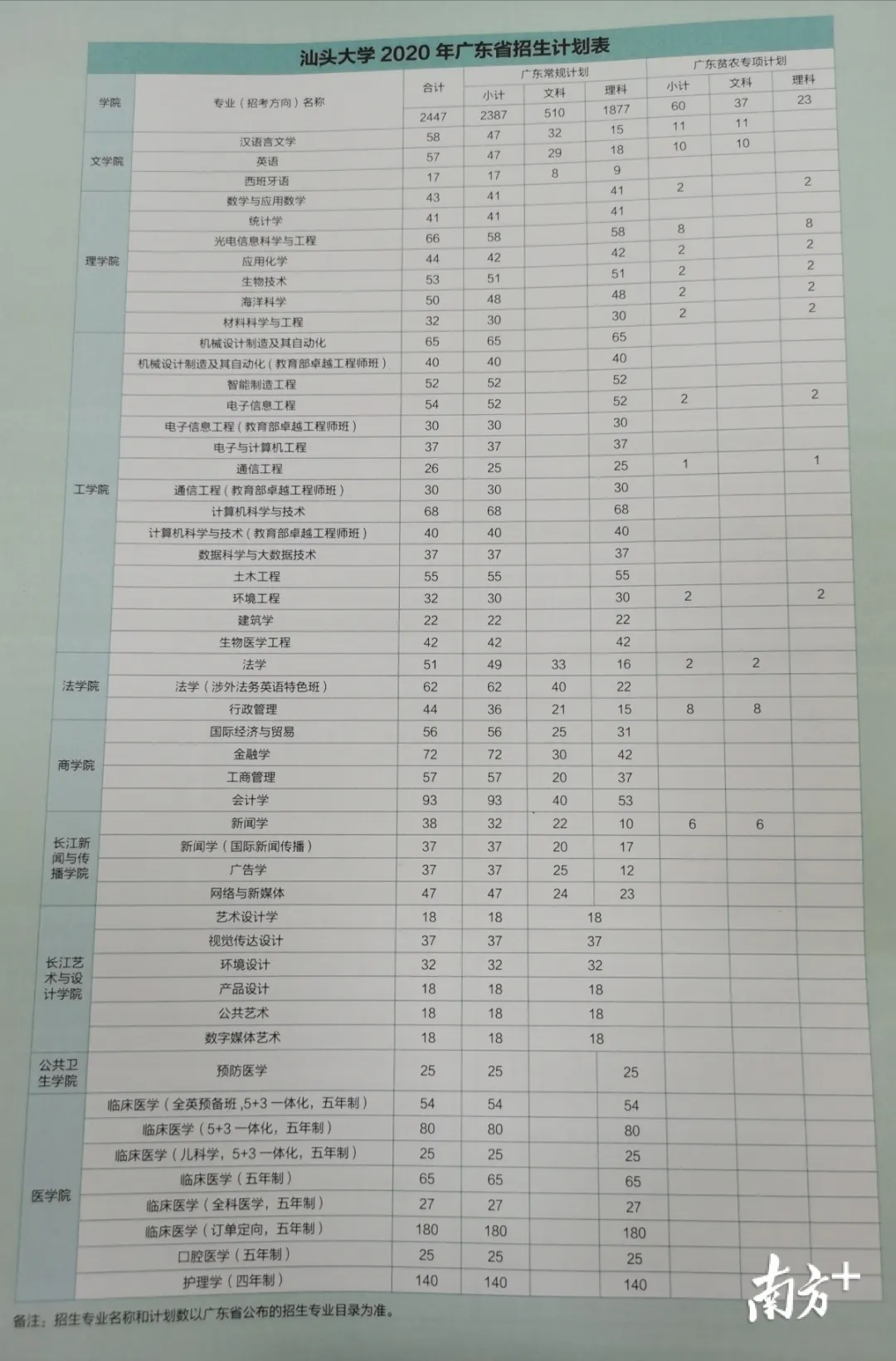 汕大本科生招生計劃數(shù)為3100人,新增預(yù)防醫(yī)學、藥學專業(yè),分別招生30人、20人,并增加新聞學專業(yè),新增國際新聞傳播方向,招生45人。