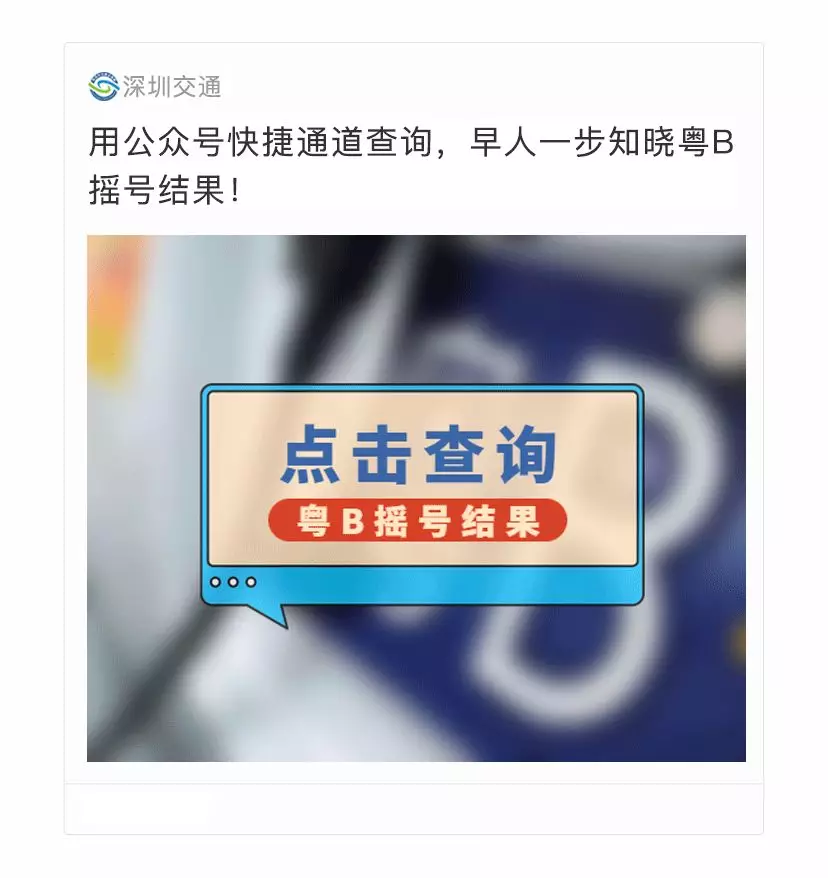 搖號當(dāng)日,“深圳交通”微信公眾號會第一時間推送公布粵B搖號結(jié)果的微信文章。
