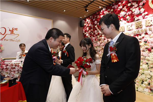 “我們是今年2月份在一起的,因?yàn)橐咔榈脑?,讓我們彼此更加知道‘珍惜眼前人’的含義,就像我在誓詞中說的那樣,未來我會(huì)用盡一生來愛她,我也會(huì)對(duì)她誠實(shí),對(duì)她的家人尊重和照顧就像對(duì)我的家人一樣,未來我們一定會(huì)健康地走下去?!痹诓稍L中,肖先生說道,選擇在“雙十二”結(jié)婚是因?yàn)榻衲晔翘貏e的一年,想在最后的一個(gè)月的雙數(shù)日子里領(lǐng)證,留下美好的回憶。