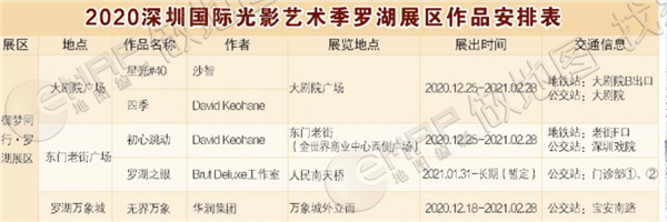 2020深圳光影藝術季羅湖展區(qū)作品安排表。