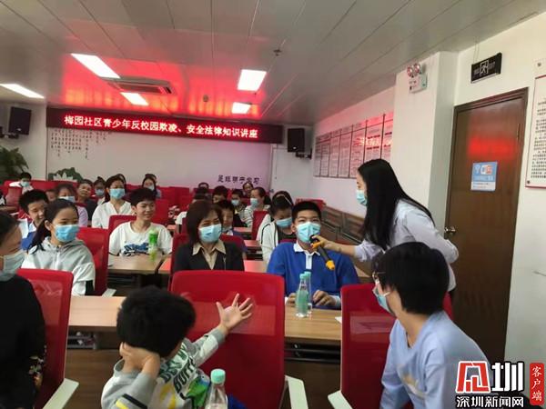 梅園社區(qū)黨委副書記陳秋珊還和學(xué)生們進(jìn)行提問互動,不僅加深了孩子們對知識講座內(nèi)容的認(rèn)識,還教會了孩子們不管是在校園還是社會上,遇到了困難應(yīng)如何采取正確的方式方法去解決問題。
