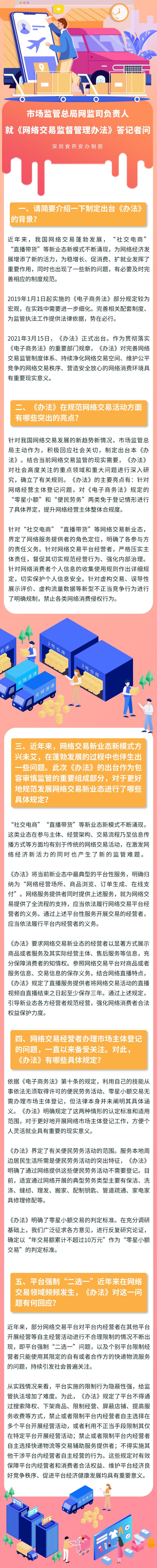 《辦法》明確了網(wǎng)絡(luò)交易監(jiān)管堅(jiān)持鼓勵(lì)創(chuàng)新、包容審慎、嚴(yán)守底線、線上線下一體化監(jiān)管原則,提出推動(dòng)完善多元參與、有效協(xié)同、規(guī)范有序的網(wǎng)絡(luò)交易市場(chǎng)治理體系,對(duì)網(wǎng)絡(luò)經(jīng)營(yíng)主體登記、新業(yè)態(tài)監(jiān)管、平臺(tái)經(jīng)營(yíng)者主體責(zé)任、消費(fèi)者權(quán)益保護(hù)、個(gè)人信息保護(hù)等重點(diǎn)問(wèn)題作出了明確規(guī)定。