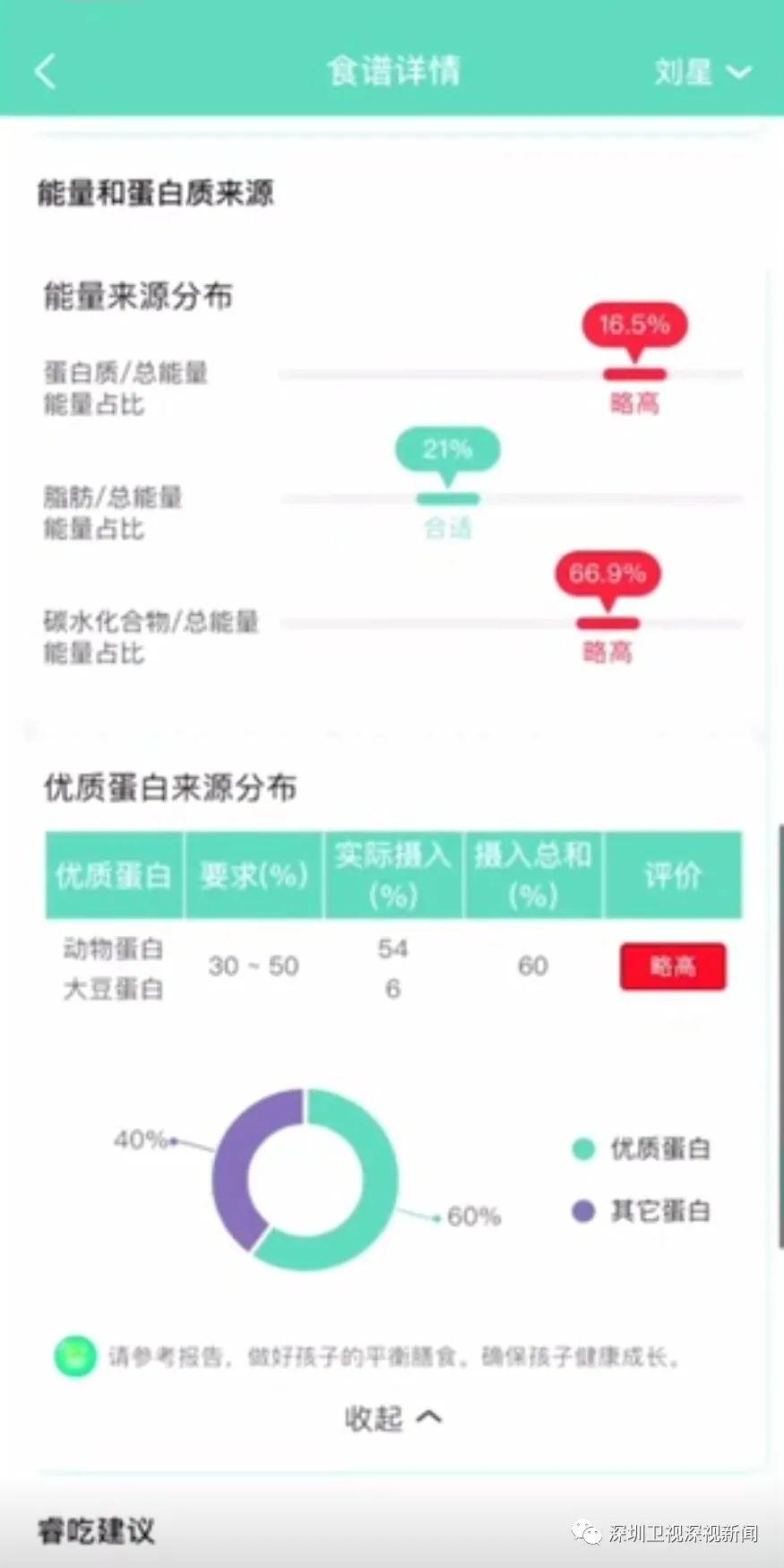 此外,家長(zhǎng)也能通過(guò)系統(tǒng),查看孩子在校用餐食譜及營(yíng)養(yǎng)素分析的情況,還能獲取家庭平衡膳食配餐的指導(dǎo)。
