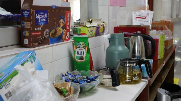 在不大的辦公室,來自各個(gè)地區(qū)的疾控人員坐在一起,聚精會(huì)神的研究手中的數(shù)據(jù),與同事核對(duì)信息準(zhǔn)確性,不時(shí)有工作人員撥出電話、接到電話,神情專注地聆聽聽筒后的每一個(gè)數(shù)據(jù)。在門外,一條長桌上擺滿了各種零食、飲品,一盒潤喉糖已經(jīng)見底,一箱功能飲料也已經(jīng)所剩無幾。