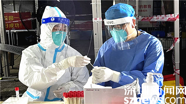 連日來,在羅湖區(qū)各大核酸檢測點,醫(yī)護人員頂著烈日驕陽,身著密閉防護服,戴著隔離面罩,全副武裝奮戰(zhàn)在一線為市民進行核酸檢測。
