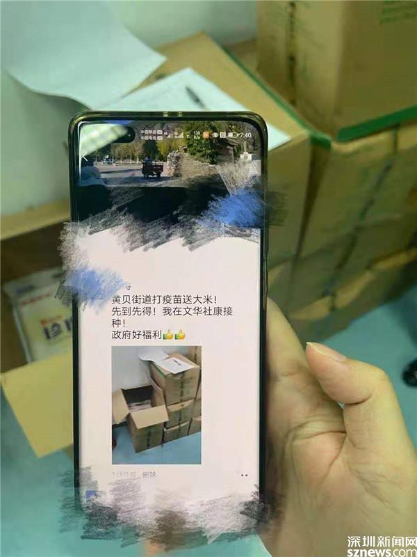 讀特客戶端·深圳新聞網2021年6月26日訊(記者 劉嘉敏)“黃貝街道打疫苗送大米!先到先得!我在文華社康接種!政府好福利!”6月26日一大早,一則“黃貝打疫苗送大米”的朋友圈在羅湖各個居民微信群中流傳,不少街坊紛紛感嘆,“黃貝好福利!”