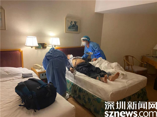 醫(yī)護(hù)人員正在為陳先生進(jìn)行身體檢查。