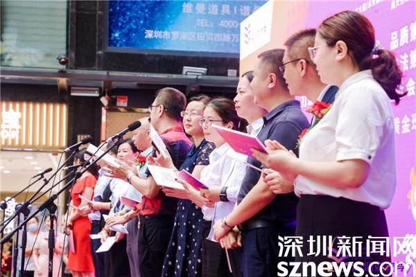 隨后,水貝萬山珠寶文化產(chǎn)業(yè)園總經(jīng)理陳曄平、金展珠寶廣場(chǎng)招商運(yùn)營(yíng)總監(jiān)王琳琳、特力珠寶大廈運(yùn)營(yíng)總經(jīng)理崔戰(zhàn)紅、水貝金座運(yùn)營(yíng)中心總監(jiān)趙麗、水貝國(guó)際中心運(yùn)營(yíng)總監(jiān)廖燦榮等交易中心代表,以及周六福珠寶總經(jīng)理謝明育、周大生珠寶行政副總經(jīng)理周洪生、金大福珠寶副總裁丘航等珠寶品牌代表一同上臺(tái)宣誓,表達(dá)展示特色、推廣品牌、促進(jìn)消費(fèi)、助推增長(zhǎng)的決心。