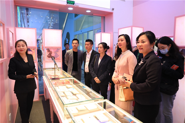 本次活動中,人大代表們還走進商場品牌門店、網(wǎng)紅店與消費者互動。代表們走進周大生珠寶參股品牌大生美門店,被為大生美設計的星座極光大師系列作品所吸引目光。在翠綠門店,代表們對金箔制成的千里江山圖贊不絕口?!敖鸩谱鞒蓴?shù)米長的畫,這個工藝實在是高?!贝韨冊谝慌愿袊@道。