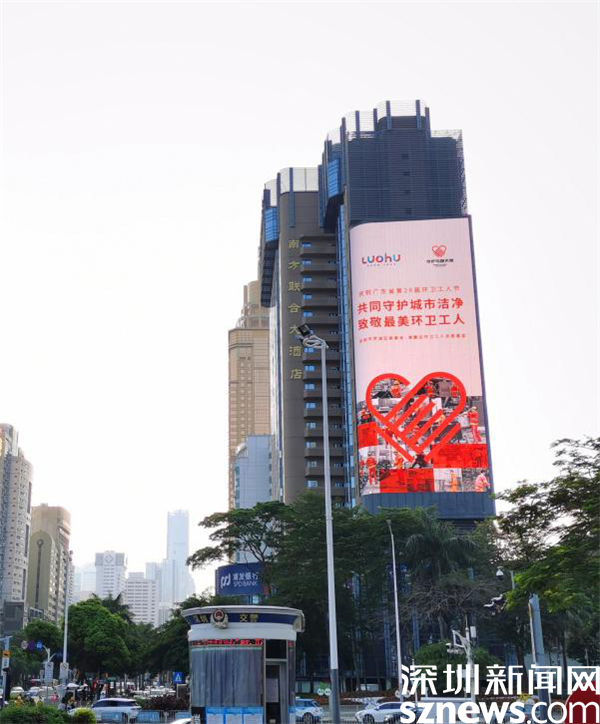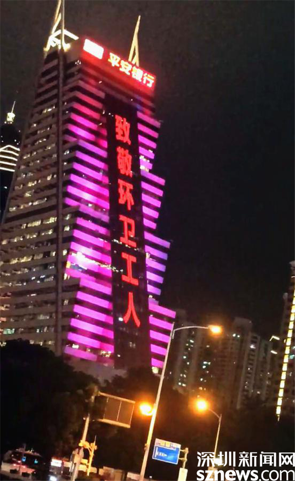(羅湖地標(biāo)性建筑為環(huán)衛(wèi)工人亮燈)