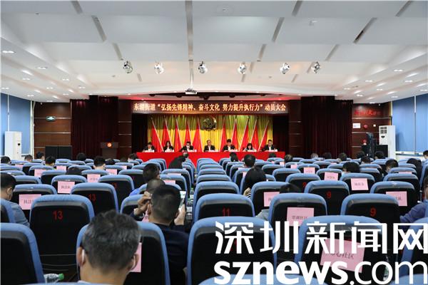 讀特客戶端·深圳新聞網2021年11月19日訊(記者 郭含笑 通訊員 黃貽凱)感恩奮進跟黨走,緊鑼密鼓再出發(fā)。羅湖區(qū)第八次黨代會、區(qū)“兩會”的順利閉幕是一個結束,也是羅湖新征程、新使命、新奮斗的開始。為弘揚羅湖光榮傳統(tǒng)、賡續(xù)羅湖血脈傳承,在街道全體黨員干部中形成憋足一口氣趕超奔跑、鉚足一股勁狠抓落實的風氣,把先鋒精神、奮斗文化轉化為強大執(zhí)行力、踐行在奮斗新征程,11月19日下午,深圳市羅湖區(qū)東湖街道召開“弘揚先鋒精神、奮斗文化 努力提升執(zhí)行力”動員大會。街道黨工委書記程時菊等處級干部,各辦、中心全體在編人員,各社區(qū)黨委書記、副書記、副站長、城管專干共100余人參加會議。