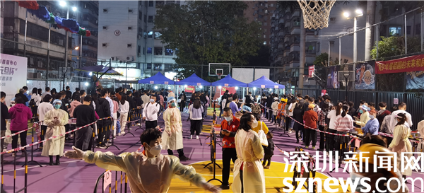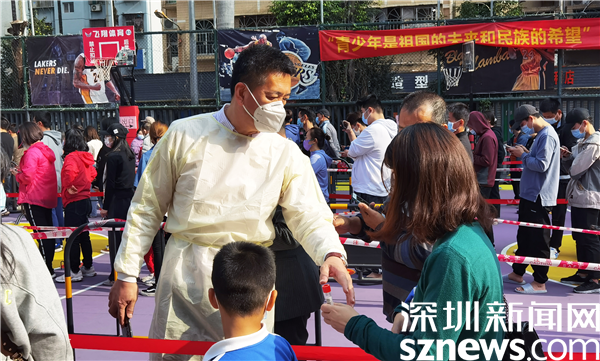 羅湖區(qū)審計(jì)局黨組書記黃吉南在新村社區(qū)防疫現(xiàn)場(chǎng)指導(dǎo)核酸檢測(cè)流程。