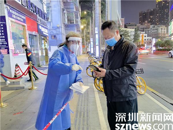 讀特客戶端·深圳新聞網(wǎng)2022年1月10日訊(記者 劉嘉敏 通訊員 楊紀(jì)歐)“來了來了,又來了一個!請打開健康碼,測體溫?!痹诹_湖區(qū)桂園街道老圍社區(qū)禧程酒店臨時檢測點(diǎn),不時響起這樣的歡呼聲,那喜悅之情溢于言表,這是志愿者周先珍。夜已深,但檢測點(diǎn)依然燈火通明,社區(qū)工作者和志愿者以及醫(yī)務(wù)人員挑燈夜戰(zhàn),周先珍是其中之一。