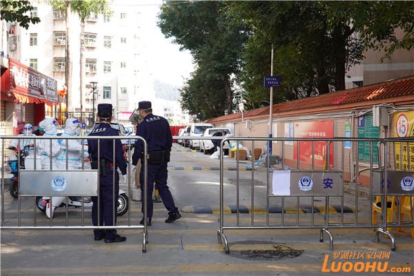 當(dāng)天中午,記者來到鶴圍村,從紅崗北路路口起就屬于管控區(qū)。從紅崗北路徑直走到鶴圍村入口,只見入口處搭起了紅色警棚,村口也拉起了防護欄,由值班民警進行把守,來往的居民、工作人員都需進行體溫測量和信息告知,非必要人員不得隨意進出。當(dāng)前,封控區(qū)、管控區(qū)內(nèi)居民小區(qū)已實行圍合式管理,落實“只進不出”管控、流調(diào)溯源、全員核酸檢測等防控措施。