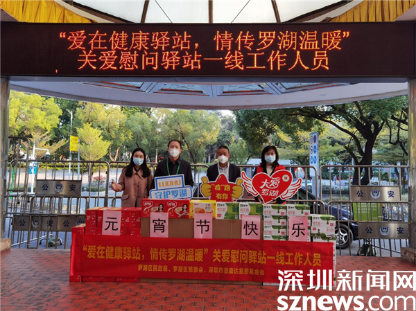 為關(guān)心、關(guān)愛羅湖健康驛站一線工作人員,羅湖區(qū)慈善會攜手羅湖區(qū)民政局、深圳市澳康達慈善基金會開展“愛在健康驛站,情傳羅湖溫暖”關(guān)愛慰問活動,為羅湖區(qū)11個健康驛站工作人員送去節(jié)日祝福和社會各界的關(guān)懷及溫暖。