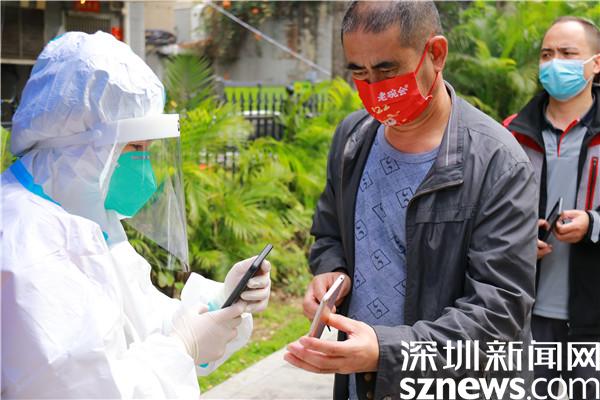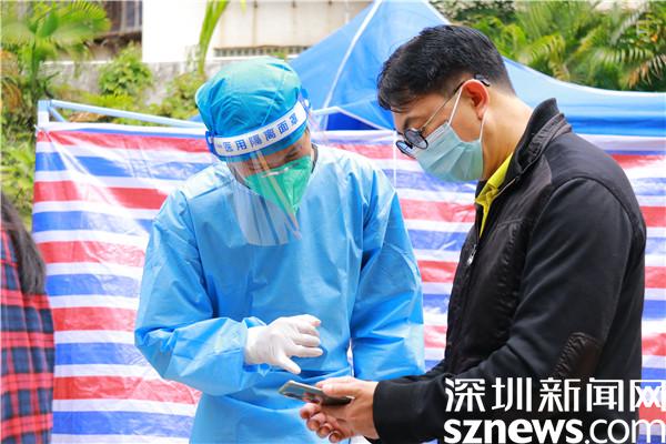 從2月17日開(kāi)始,劉曉勇加入安保公司,被派到羅湖區(qū)東曉街道支援疫情防控工作,至今已有13天,13天里,他跟隨隊(duì)伍轉(zhuǎn)遍了東曉街道各個(gè)核酸檢測(cè)點(diǎn),從分流人群、維持秩序,到掃碼、引導(dǎo)居民操作、核酸檢測(cè)點(diǎn)布置、采樣結(jié)束收尾……對(duì)每個(gè)流程都了如指掌;13天里,他每天工作十幾個(gè)小時(shí),從早上九點(diǎn)到晚上十點(diǎn)、十一點(diǎn),只在中午輪班吃飯的時(shí)候有十幾分鐘休息時(shí)間。