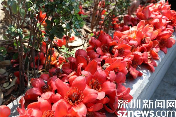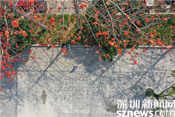 赤焰灼灼的木棉花開了,染紅了轄區(qū)半邊天際,與深圳藍(lán)相映成趣。一朵朵嫣紅的花兒垂?jié)M枝頭,沐浴著暖春的陽(yáng)光綻放,也點(diǎn)綴著花下賞花的居民們。