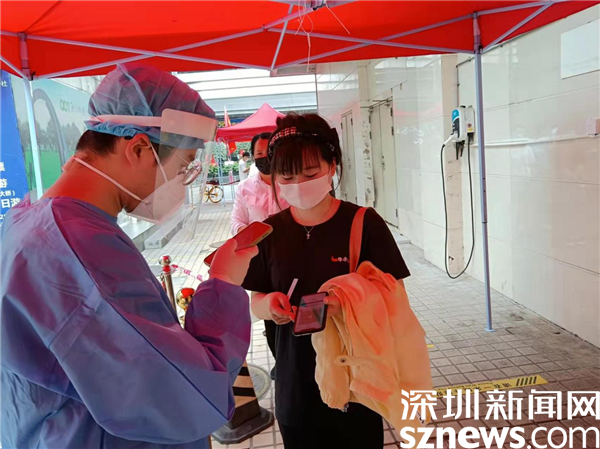 楊帆今年22歲,去年7月份大學(xué)畢業(yè)來到深圳。他說,一來深圳,就愛上了這座年輕的城市,希望自己能在這里開花結(jié)果?!艾F(xiàn)在深圳遇到了難處,作為年輕人,我沒理由不參與這場(chǎng)戰(zhàn)疫?!彼诿碎w小區(qū)配合同事陳大盛,在隊(duì)伍外圍維持秩序,核實(shí)每個(gè)居民的核酸記錄。
