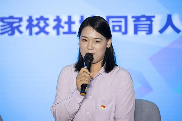 學校代表大望小學德育主任、團委書記李海燕老師分享了三方協(xié)同育人的方式方法。例如邀請家長參與進學校相關管理,定期開展專題講座,如好家風、正面管教、親子沙盤游戲、性教育等,每學期,進行陽光家長評選活動,表彰好家風的典型等等,不僅提高家長對學校的配合度,還能使家長領悟到家庭教育的重要性,學習到教育方法和技能。同時,學校與社區(qū)聯(lián)系緊密,開設家校社共育活動室,建立教育活動陣地,開展具有當?shù)靥厣挠H子活動,進一步發(fā)揮家校社協(xié)同育人的功效。