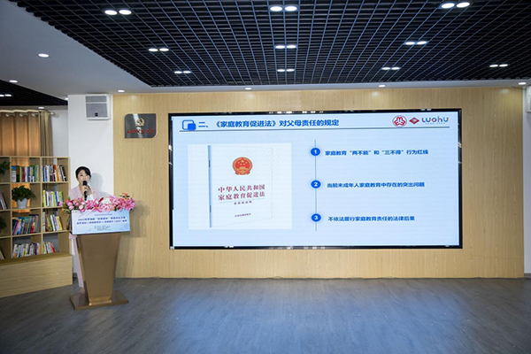 沙龍伊始,羅湖區(qū)人民法院民一庭(家事庭)副庭長欒媛帶來《〈家庭教育促進法〉解讀》的專題講座,闡明《家庭教育促進法》的意義,明晰家長“兩不得”“三不能”的行為紅線,并針對當下大多家庭教育存在生而不養(yǎng)、養(yǎng)而不教等突出問題進行剖析,結合工作歷程中生動形象的案例,讓許多家長明確了法律的要求。同時,欒法官也為家長們提出了實用科學的家庭教育內(nèi)容和方法,也對家校社協(xié)同育人機制發(fā)表了自己的想法。