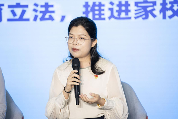 “家長要做好家庭教育,家庭教育要配合學校教育,學校和家庭配合是做好家庭教育的關鍵”,家長代表深圳市兒童青少年健康發(fā)展協(xié)會理事安天麗也談到自己對家、校、社各盡其職、合作共贏的理解,她認為家長要積極創(chuàng)建各種親子家庭活動,緊密親子關系;積極參與社區(qū)組織的家庭教育指導和實踐活動,提升家庭教育能力;同時為孩子創(chuàng)造社會實踐的機會。