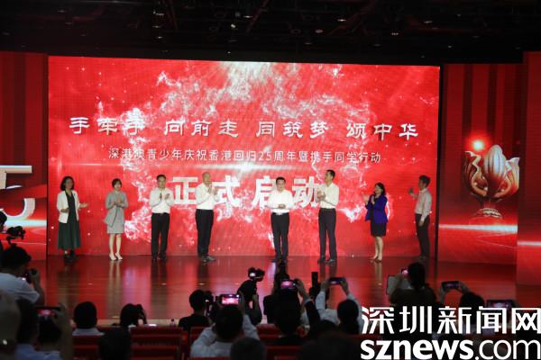 香港教育局局長(zhǎng)楊潤(rùn)雄,澳門(mén)教育及青年發(fā)展局副局長(zhǎng)黃嘉祺,深圳市委教育工委副書(shū)記、市教育局黨組成員楊平分別致辭,充分肯定了攜手同學(xué)行動(dòng)對(duì)深港澳文化交流的貢獻(xiàn),并希望未來(lái)三地能有更加深入、密切的聯(lián)系,互惠雙贏,切實(shí)增強(qiáng)深港澳青少年的民族自豪感和凝聚力。隨后,領(lǐng)導(dǎo)與港澳青年代表上臺(tái)啟動(dòng)深港澳青少年慶祝香港回歸25周年系列活動(dòng)。