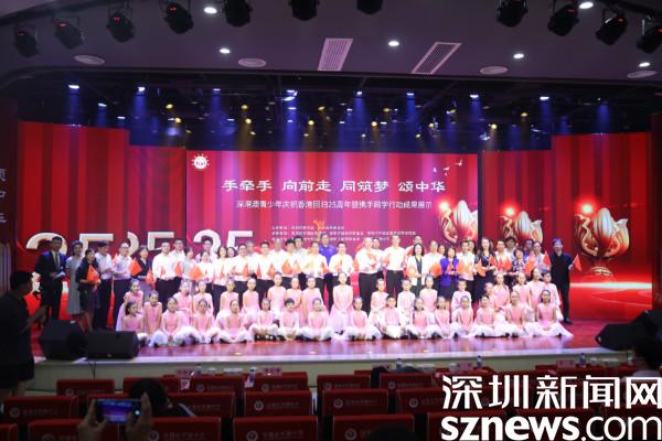 讀特客戶端·深圳新聞網(wǎng)2022年5月25日訊(記者 謝秋平 通訊員 周文干)5月25日下午,由深圳市教育局、深圳海外聯(lián)誼會(huì)主辦,深圳市羅湖區(qū)教育局、深圳羅湖海外聯(lián)誼會(huì)、深圳市羅湖區(qū)教育科學(xué)研究院承辦,香港深圳青年總會(huì)、深圳工程師聯(lián)合會(huì)、深圳市羅湖中學(xué)協(xié)辦的“深港澳青少年慶祝香港回歸25周年暨攜手同學(xué)行動(dòng)成果展”在深圳市羅湖中學(xué)舉行。活動(dòng)以“手牽手,向前走,同筑夢(mèng),頌中華”為主題,展示了深港澳少年攜手同學(xué)行動(dòng)的系列成果。深圳市委統(tǒng)戰(zhàn)部二級(jí)巡視員周文軍,深圳市委教育工委副書(shū)記、市教育局黨組成員楊平,羅湖區(qū)委常委、統(tǒng)戰(zhàn)部部長(zhǎng)黃劍峰參加活動(dòng),香港教育局局長(zhǎng)楊潤(rùn)雄、澳門(mén)教育及青年發(fā)展局副局長(zhǎng)黃嘉祺通過(guò)網(wǎng)絡(luò)連線方式參與活動(dòng)?;顒?dòng)在羅湖教育云平臺(tái)全程直播,深港澳三地100多所學(xué)校通過(guò)線上直播觀看。