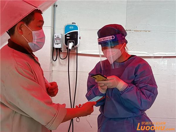 近期,深圳風(fēng)雨交加,老圍社區(qū)核酸檢測點(diǎn)秩序井然,居民排隊(duì)等候檢測,三組通道通行順暢。何芬穿上藍(lán)色防護(hù)服,戴著口罩面屏,手持手機(jī),按照十人一組的規(guī)律,快速有效地掃碼,掃完優(yōu)雅地做出手勢,指示檢測人員走入正確通道,并及時(shí)阻止試圖串道的個(gè)別人。有她的高效掃碼,大大減少了居民排隊(duì)等候的時(shí)間。大雨從上午下到晚上,帳篷縫隙處不斷有雨滴落下來,打在頭上身上,但是何芬全神貫注,根本注意不到,等到21點(diǎn)下班,才發(fā)現(xiàn)防護(hù)服都濕了。