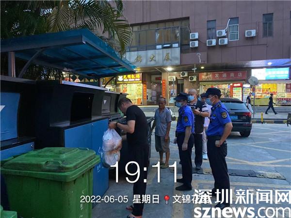 當天晚上19點-21點,小區(qū)黨員和義工在文錦花園、海富花園垃圾分類投放點與小區(qū)垃圾分類督導員共同開展垃圾分類夜間督導活動,引導居民分類投放垃圾,并為居民詳細講解和宣傳廚余垃圾分類的相關知識。同時聯(lián)同街道執(zhí)法隊開展“夜間執(zhí)法”,對所檢查的小區(qū)廚余垃圾分出量較低的物業(yè)小區(qū)開展執(zhí)法檢查,一方面指導垃圾分類督導員切實履職,另一方面對于亂投放垃圾的行為,對其責令改正。