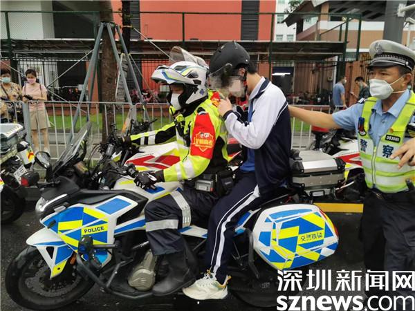 上午7時45分許,羅湖交警大隊黃貝中隊在深圳市第二實驗學校開展高考護航執(zhí)勤期間,接到現(xiàn)場一名高考生求助,稱其遺落考試用品在明珠學校宿舍。為避免耽誤考生進入考場,獲悉該情況后,黃貝中隊林偉標中隊長迅速安排現(xiàn)場執(zhí)勤隊員葉兆年、羅益華護送該考生返回至明珠學校尋找。接到該指令后,現(xiàn)場隊員一方面安排考生坐上警用摩托車并佩戴好頭盔,一方面打開警燈在前后方開道進行護送。由于時間緊迫,在翻找無果后,現(xiàn)場鐵騎又迅速將該考生送回考場。8時15分許,在現(xiàn)場派出所、交警鐵騎的協(xié)助下,該名考生及時進入深圳市第二實驗學校高中部考點參加考試。