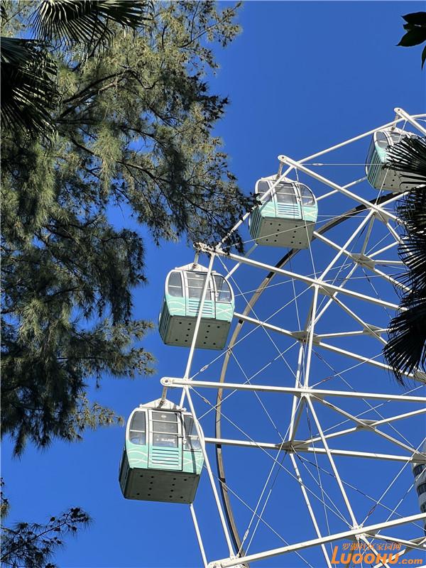 摩天輪藏在藍(lán)天綠樹間,顯得格外浪漫。