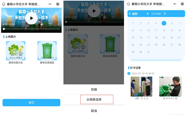 需要注意的是,學(xué)生在上傳照片時,須上傳每日廚余分類和廚余投放照片,不可重復(fù)使用同一張照片進行打卡,當日多次上傳照片僅記錄打卡簽到1次;此外,如上傳與廚余垃圾分類無關(guān)的照片,系統(tǒng)將自動作廢當次打卡,判定該次打卡無效。