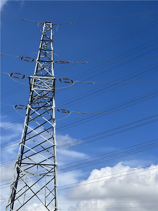 有序交錯(cuò)的電線桿,在藍(lán)天白云的映襯下,顯現(xiàn)出縱橫交錯(cuò)的秩序美。
