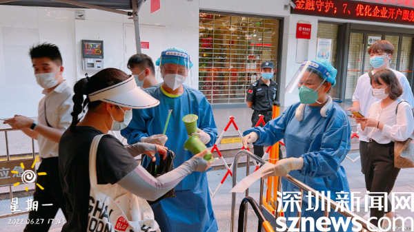 除了“人力”支援,“物力”支援也沒(méi)落下??紤]到大部分核酸檢測(cè)點(diǎn)的現(xiàn)場(chǎng)工作人員要在高溫下工作,南湖街道周邊商戶及居民自發(fā)送來(lái)米湯、甘蔗汁等防暑物資,為防疫一線工作人員“送清涼”。