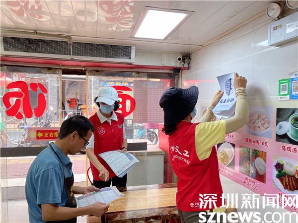 針對黃貝嶺村商鋪林立、餐飲企業(yè)較多的情況,活動當(dāng)日,社區(qū)工作人員和黨員志愿者手拿垃圾分類宣傳資料分成兩個宣傳小分隊,進入黃貝嶺村,對沿街商鋪、餐飲門店張貼光盤行動海報及對過往的居民發(fā)放垃圾分類宣傳資料,零距離指導(dǎo)居民實施垃圾分類,并對村里電瓶車亂停放、亂擺賣等影響環(huán)境衛(wèi)生的不文明行為進行宣傳整治,引導(dǎo)居民環(huán)境衛(wèi)生從“整治”變“自治”,告別不文明行為。