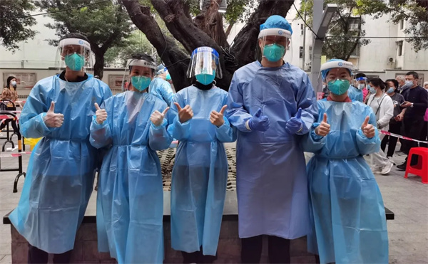 早上9點(diǎn),臨時(shí)增設(shè)的核酸檢測(cè)點(diǎn)已經(jīng)排起了長(zhǎng)隊(duì),身穿藍(lán)馬甲的羅湖工會(huì)干部與身穿紅馬甲的社區(qū)工作者組成一道“藍(lán)紅”防線,他們?cè)诓蓸狱c(diǎn)維持秩序、協(xié)助醫(yī)護(hù)人員進(jìn)行掃碼登記信息、回答各種咨詢(xún)提問(wèn).....多次支援一線的防疫經(jīng)驗(yàn)讓工會(huì)干部在此次防疫工作中反應(yīng)迅速、有條不紊。