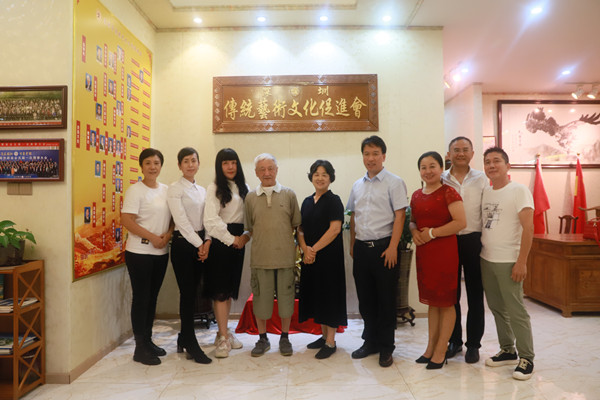 7月15日下午,原深圳大學(xué)校長、深圳市傳統(tǒng)藝術(shù)文化促進(jìn)會名譽(yù)會長章必功,脖子上戴著輔助呼吸器,大病初愈,在夫人趙玉茹的陪同下到文促會指導(dǎo)工作。