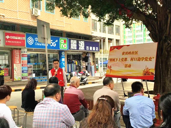 深圳市羅湖區(qū)黃貝街道黃貝嶺社區(qū)于3月12日下午開展“榕樹下講黨課、村口邊學黨史”主題黨日活動。黃貝街道黨工委副書記、辦事處主任鐘遠鋒以及轄區(qū)黨員、居民共30余人參與此次活動。