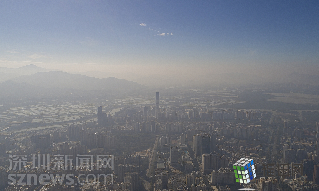 1月18日上午,記者操控無人機俯瞰深圳中心區(qū)發(fā)現(xiàn),灰霾將天空“割裂”成一道涇渭分明的界線,把城市籠罩得如同一個充滿霧靄的森林。從平安金融大廈的上空遠眺,西南面的深圳灣在灰霾的籠罩下變成了一片“沙漠”,東面的京基一百幾乎被灰霾“吞沒”,北邊平時肉眼可看的梅林山也因為能見度較低變得若隱若現(xiàn),南面的米埔濕地也被云遮霧繞。