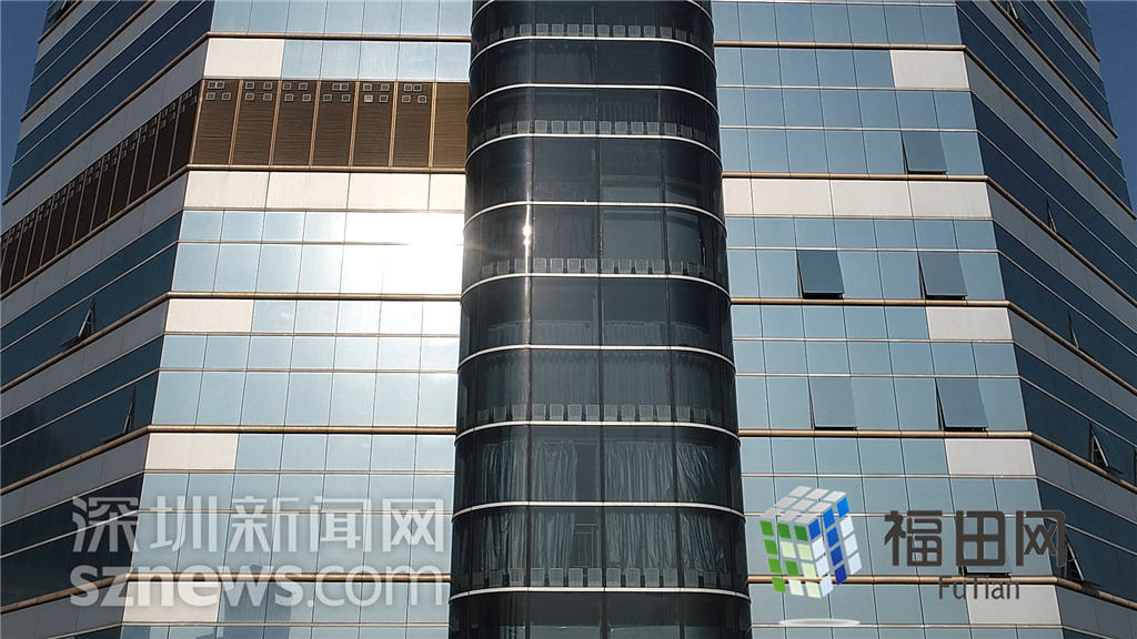 大廈的玻璃幕墻和觀光電梯。