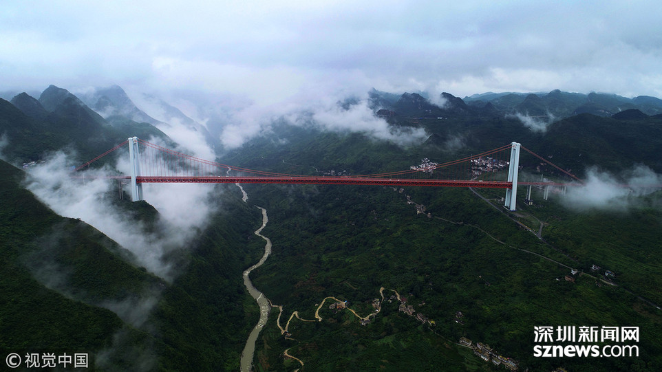 ???深圳新聞網(wǎng)訊 2018年6月26日,一場大雨后貴州省安順市關(guān)嶺縣壩陵河大峽谷云霧繚繞,橫跨兩岸的壩陵河大橋在云霧中時(shí)隱時(shí)現(xiàn),更顯雄偉壯觀。