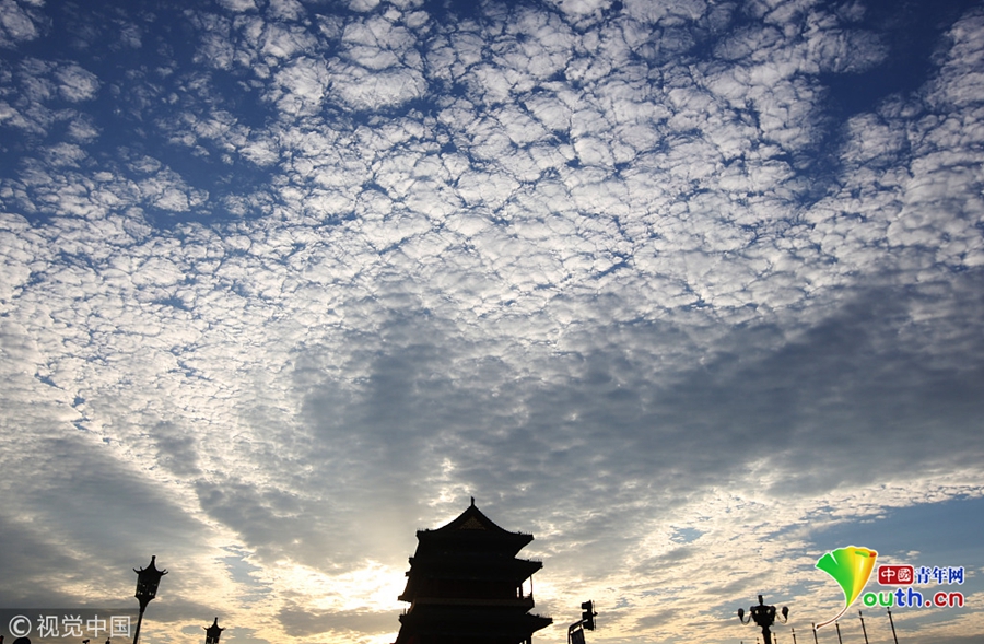 北京高積云點(diǎn)綴天空,和夕陽(yáng)一起勾勒出一張絕美“天空?qǐng)D”。