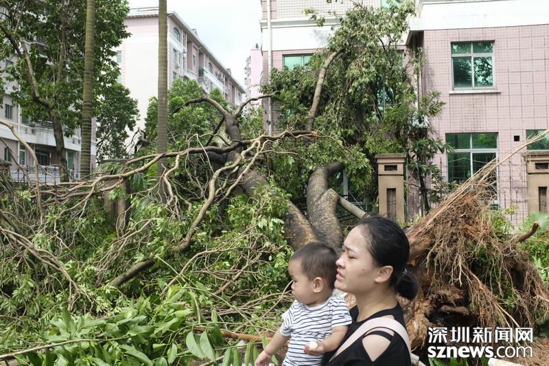 2018年9月17日10點(diǎn)10分,商報(bào)東二路富霖小區(qū)一側(cè),樹木倒塌砸進(jìn)民樓。(攝影:楊浩翰)