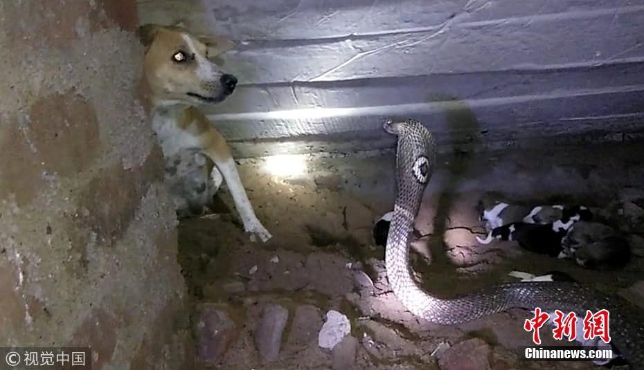 9月20日訊(具體拍攝時間不詳),印度奧里薩邦,一只寵物狗勇敢地挽救了新生幼犬的生命,它擊退了一條可怕的眼鏡蛇。面對一條巨大的斑點眼鏡蛇——世界上最毒的蛇之一——這位新媽媽勇敢保護僅出生兩天的幼崽。但不幸的是,盡管狗狗盡了最大的努力,蛇還是在救援人員救出幼犬之前仍殺死了4只小狗。圖片來源:視覺中國