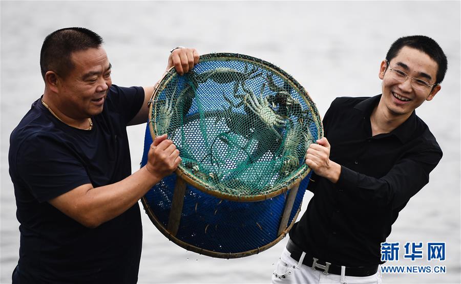 9月21日,蟹農(nóng)展示剛捕撈到的陽澄湖大閘蟹。新華社記者李響攝