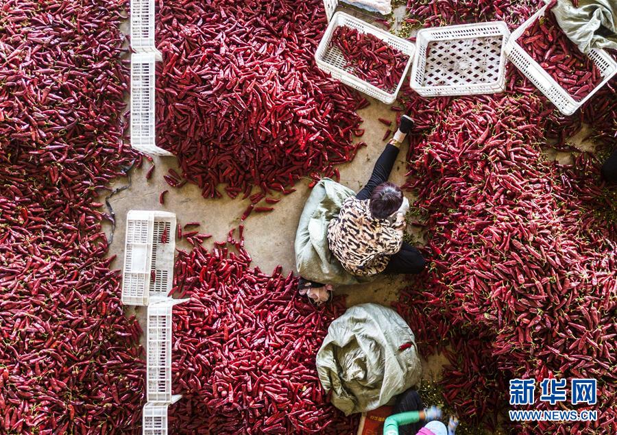 9月16日,阜城縣王集鄉(xiāng)南張莊村農(nóng)民在整理收獲的辣椒。近年來,河北省阜城縣王集鄉(xiāng)在推進(jìn)產(chǎn)業(yè)富民過程中,積極引導(dǎo)農(nóng)民調(diào)整農(nóng)業(yè)產(chǎn)業(yè)結(jié)構(gòu),按照品種特色化、種植規(guī)?;a(chǎn)銷一體化的“公司+基地+農(nóng)戶”的經(jīng)營模式,鼓勵(lì)農(nóng)民發(fā)展特色辣椒種植,推行“訂單種植”模式,開辟出了一條農(nóng)民創(chuàng)收新路徑。目前,阜城縣王集鄉(xiāng)辣椒種植面積3100余畝,每畝年收益2500元以上,帶動(dòng)當(dāng)?shù)剞r(nóng)民實(shí)現(xiàn)增收。新華社記者朱旭東攝