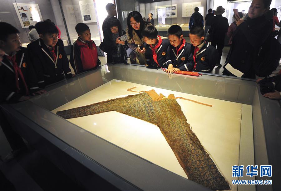 9月24日,在位于烏魯木齊的新疆博物館,參觀(guān)者在“尼雅·考古·故事——中日尼雅考古30周年成果展”上觀(guān)看“長(zhǎng)樂(lè)大明光”錦女褲。此次展覽從9月22日持續(xù)到2019年1月。 新華社記者 王菲 攝