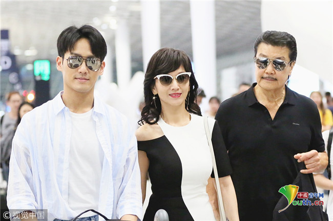 2018年9月25日晚,深圳,剛參加完央視秋晚的趙雅芝攜老公黃錦燊及兒子黃愷杰抵達深圳寶安機場,超高顏值的一家人所致之處頻頻引起側(cè)目,其子黃愷杰自推行李車,俊朗的外形引起粉絲一路跟拍,相當(dāng)拉風(fēng)!